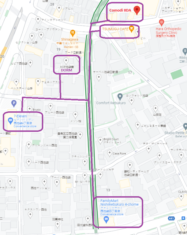 However, if you find yourself needing to buy food with more longevity to it, the area that the Ikebukuro dorms are located in will have you covered as well. As there are three locations that will be able to help you out with getting things to fill your fridge with. Those places being, the 7-Eleven, FamilyMart and Comidi-IIDA, all of which are all just a 5-minute walk away from your dorm.